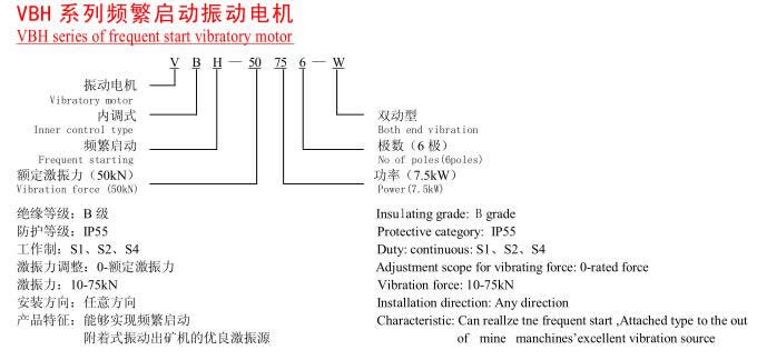 VBH系列頻繁起動振動電機,功率1.5~11KW,4、6極,激振力為10~75KN,共計6個規格。